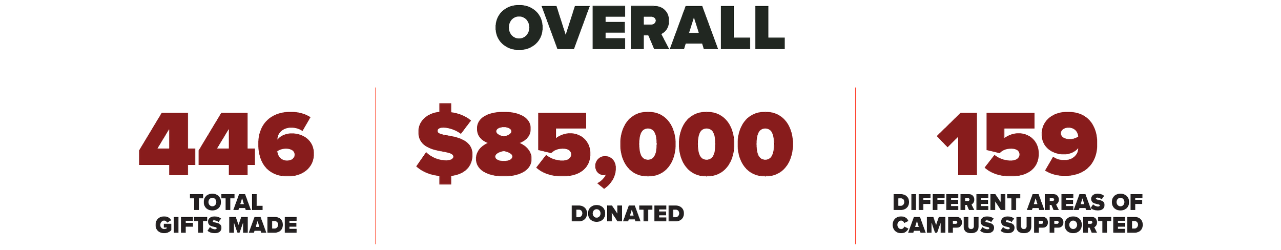 This year, more than 446 donors supported 159 different aspects of academic and campus life on Giving Tuesday. As a result, 11 students will receive $1,000 scholarships, food-insecure students can take advantage of 400 new meal swipes through the Food Security Fund, and the Student Supply Closet will be restocked with toiletries and other necessities.